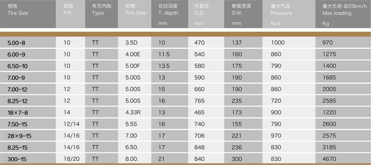 Suitable for scrapers and forklifts in areas like ports, factories, warehouse, etc; Excellent cutting and wearing resistance; Good comtact and traction performance provided by thick tread pattern; Good self-cleaning capacity; Long service life.